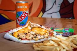 Poulet tandoori, crudites, cheddar Frites Boissons