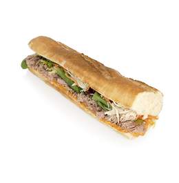 Baguette tradition, émincé de bœuf, salade, tomates, oignons