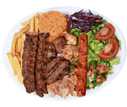 Merguez, kefta, poulet, frites maison, 3 sauces