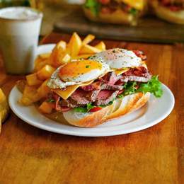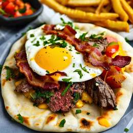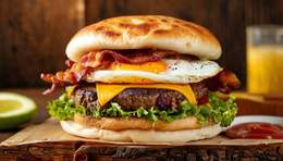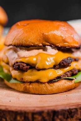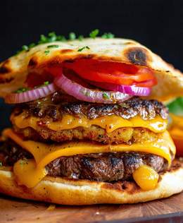 2 Steak , 2 sauces au choix, garnitures au choix, œuf, bacon, fromage cheddar.