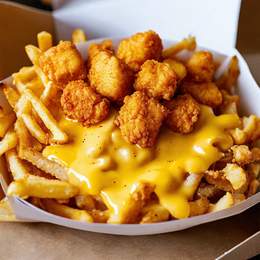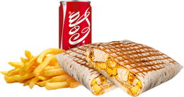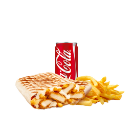 Escalope de poulet, sauce thaï piquante, cheddar, frites, boisson coca 25cl