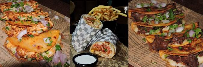 Fromage, oignons, coriandre, citron, sauce birria