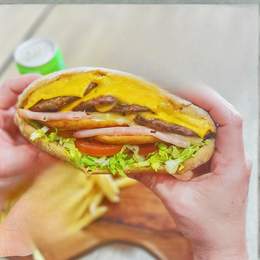 Steak haché, Cheddar, Salade, Tomate, Oignon, Sauce au choix