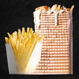 Tacos 2 viandes au choix (composé de frites et sauce fromagère maison)