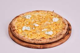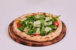 Crème de truffe, Mozzarella, Sauce crème, Champignons de Paris, Copeaux de parmesan.