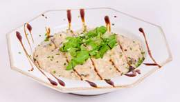 Risotto, poulet, champignons de paris, parmesan, sauce pesto.