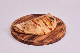 Chausson de pâte garni d’un mélange à base de coulis de tomates, garniture au choix, mozzarella, origan.
