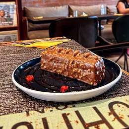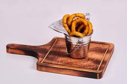 Pain brioché, bœuf haché, brie pané, cheddar, emmental, champignons de Paris, tomate, iceberg, oignon pané, sauce BBQ maison.