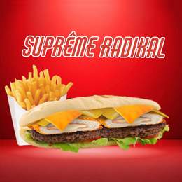 Gratiné gouda, tenders, jambon de dinde fumé, frites maison, sauce spécial cheesy et fromagère maison avec boisson