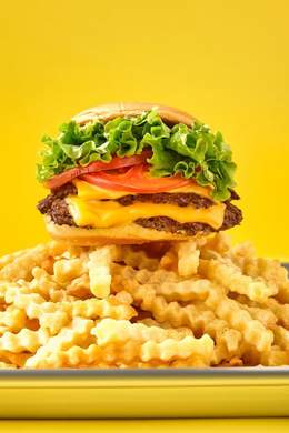 The classic. Servi dans un délicieux Martin's potato bun avec american cheese, laitue, tomate et sauce TGB, frites et boissons