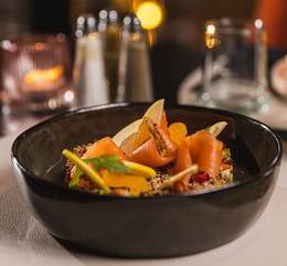 houmous, guacamole, olives noires, huile d'olive, fromage frais au thym, pain tradition,