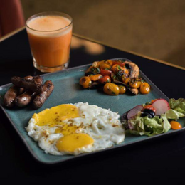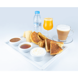 BOISSON CHAUDE AU CHOIX , JUS DORANGE OU DE CAROTTE ,OEUF BROUILLIES AU FROMAGE TOMATES CERISES ET CHAMPIGNIONS SAUTES SAUMON FUME ET AVOCAT POMMES DE TERRE SAUTEES , SALADE DE FRUITS ,PANCAKES AU CHOIX , PANIER DE PAINS