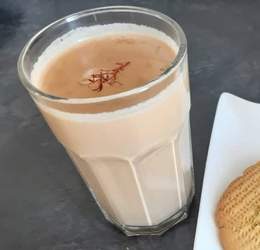 Soupe d'orge, tajine de khlii fassi aux œufs beldi, olives noires, corbeille de pain pistolet, jus d'orange ou jus de carottes, boisson chaude, eau minérale