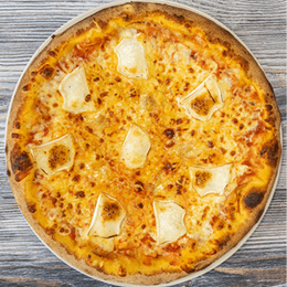 Sauce tomate, mozzarella, fromage rouge, fromage bleu, fromage cheddar