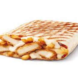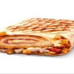 Chawarma, fromage carré, laitue, tomate, oignon, frite