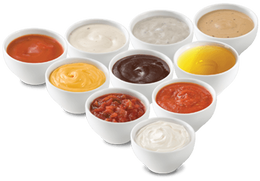 Servi Avec Laitue Fraîche, Oignons, Tomates, Sauce Bbq, Sauce Mayonnaise Au Piment Doux Frangos Et Fromage Fondu.