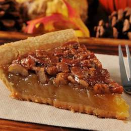Tarte riche garnie de noix et d'un caramel au beurre salé.