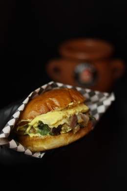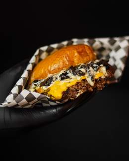 Bun maison, cheddar, steak smashed 100% pur boeuf, champignons et notre sauce mushroom faite maison.