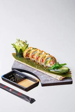 Feuille Nouri, riz, concombre (6 pièces) servis avec sauce soja Maison