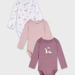 Body pour Bébé Fille Manches Longues Rose Foncé Tex Home 3 pièces
