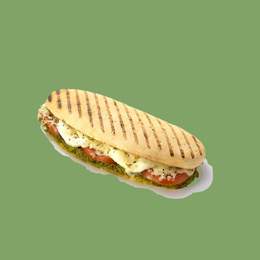 Laitue, tomate, charcuterie, mozzarella, sauce pesto, cornichons