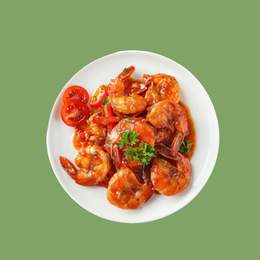 Crevette, ail, sauce tomate, persil