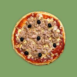 Sauce tomate, mozzarella, olives noires, origan, thon