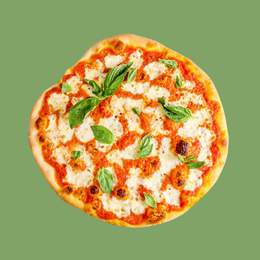 Sauce tomate, mozzarella, olives noires, origan