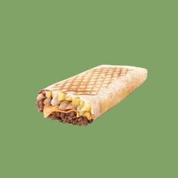 Tortilla garnie de viande hachée, sauce au choix, fromage et frites à l'intérieur