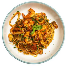 Salade romaine, tomate cerise, avocat, feta, thon, gambas, mais, olives, oignions, sauce vinaigrette