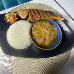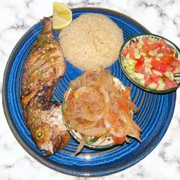 L'Attiéké poisson est un plat traditionnel ivoirien semoule de manioc accompagnée d'un poisson frais, servi avec une sauce épicée.