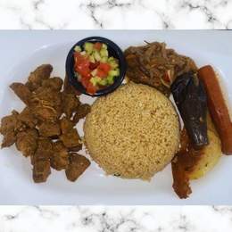 Bœuf assaisonné tendre, à base de riz, légumes frais et une sauce légère. Simple et savoureux, à l’authentique goût sénégalais.