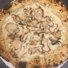 Crème parmesan, mozzarella, champignons frais, huile de truffe, parmesan.