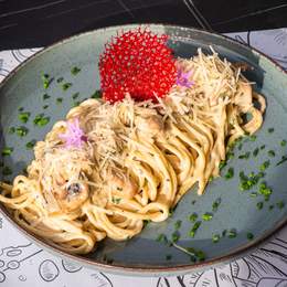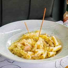 Pates, crème parmesan, poule, mozzarella, parmesan