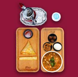 Harira, 3 dattes, 1Chbakia, œuf Dur, Assiette Malah (Briouat au Choix, Cigare au Fromage et Chilli sauce), Assiette Mini Beldi (Mini Msemen, Harcha et 2 Garniture), Boisson Chaude au Choix, Eau Minéral 0,33cl. Sandwish ou Salade, Jus du Jour et Dessert au Choix.