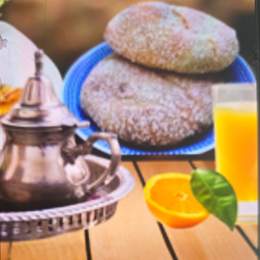 Rghayf, harcha, baghrir, boisson chaude, jus d'orange