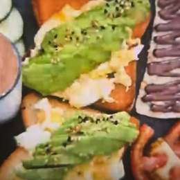 3 tost avec salmón fromage ouef avocat tomat banane boure de cacahuète miel mini crêpes mhalbiya jus de orange