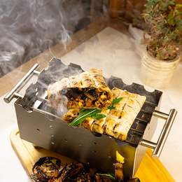batbout , viande hachée , tomate et oignon grillé , harissa , fromage vache qui rit