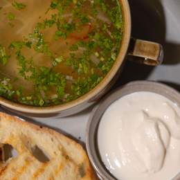 File de pui în sos de vin alb cu piure de cartofi și ulei de trufe
