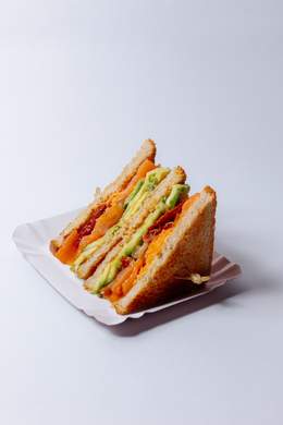 Cand nu vrei salata si nici bol, sendvisul e cea mai buna alegere: paine toast, vita frageda, rosie, avocado, castravete murat + sos din ton. E proteic, savuros si echilibrat - 210g