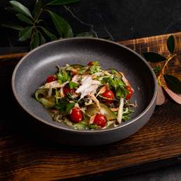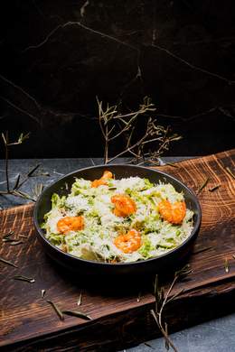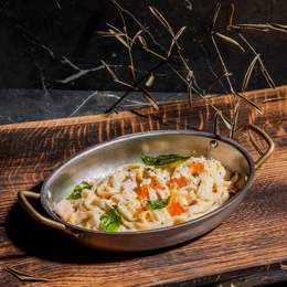Fettuccine cu carne de crab, icre roșii și ulei de trufe