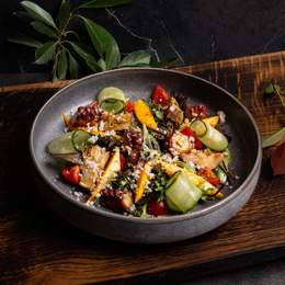 Orez, mango, chuka, roșii cherry, porumb, ridiche, avocado, tartar de creveți, sos unagi, susan, sos de soia -440 g