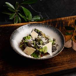 Nori, orez, tartar de creveți, ghimbir, wasabi, sos de soia -40/10/5/20