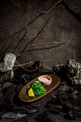 Hârtie de soia “mamenori”, cremă de brânză, ardei dulce, ton, somon, avocado, salată iceberg, castravete, salată chuka, sos de arahide, icre tobiko, sos unagi, ghimbir, wasabi, sos de soia -200/20/10/40