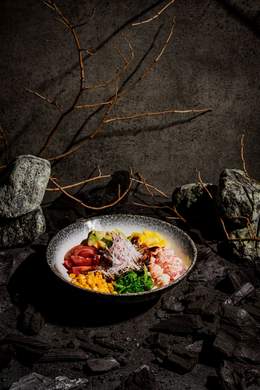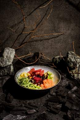 Orez, mango, edamame, roșii cherry, castravete, avocado, somon, sos ponzu, sos unagi, icre tobiko, sos de soia -440 g