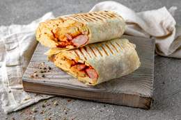 Tortilla, cârnăciori Turkey&Chicken, ou de găină, brânză, salată Iceberg - 235 gr