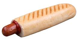 Chiflă, cârnăcior de pui, frunză de salată, castraveți murați, morcov coreean, sos alb, sos roșu, 270gr