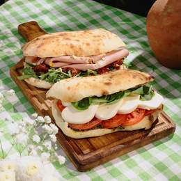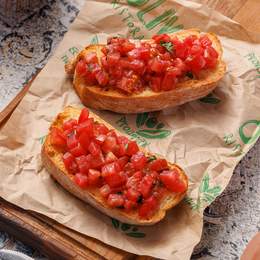 Pâine Ciabatta, roșii proaspete, ulei de măsline, cremă de ouă balsamic, oregano, busuioc proaspăt, usturoi, sare175 gr! – acest produs conține alergeni – gluten