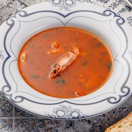 Ulei de măsline, țelină, ceapă, usturoi, midii, inele de calamar, creveți, pește Dorado, sos de roșii, pastă de ardei, oregano, condimente, pătrunjel, lămâie, pâine Ciabatta. -400/60 gAcest produs conține alergeni: gluten, pește, crustacee