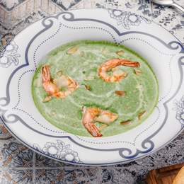 Fulgi de migdale,creveți,ceapă, usturoi, condimente, spanac, frișcă350/30 gr! – acest produs conține alergeni – lapte, nuci,crustacee